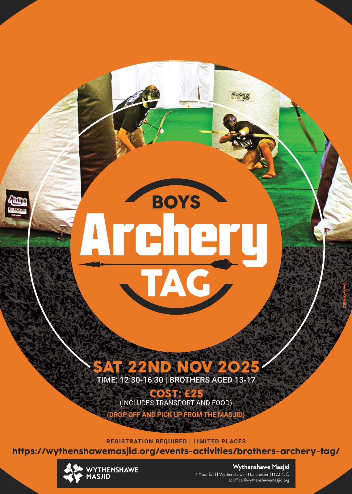 Archertype (Tag Archery) 🗓️ Saturday 22nd November 🕒 12:30 - 16:30 🚹 Brothers aged 13-17 🍕 Transport, Food and refreshments provided £25 per person ⚠️ Registration […]
